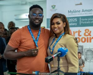 Au cœur de la Jacobléu Art Gallery, le photographe et créateur de contenus « Le Grouilleur 3.0 » a reçu une médaille des mains de Mylène Françoise Amon, l’artiste ivoirienne récemment entrée au Guinness World Records pour sa performance de 203 fleurs d’origami réalisées en une heure. La distinction, hautement symbolique, vient consacrer un acteur dont le nom s’est imposé dans les coulisses du paysage artistique et social abidjanais.